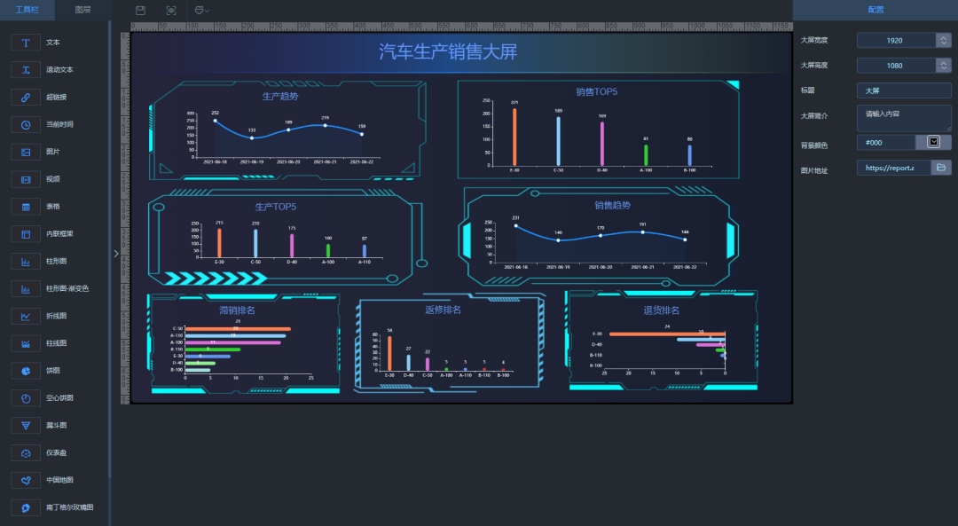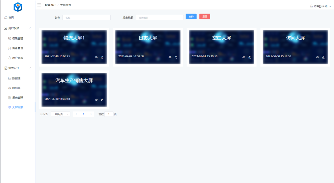 大屏設(shè)計(jì)是一個(gè)可視化拖拽編輯的,直觀,酷炫,具有科技感的圖表工具全開源項(xiàng)目。內(nèi)置的基礎(chǔ)功能包括數(shù)據(jù)源,數(shù)據(jù)集,報(bào)表管理,項(xiàng)目部分截圖如下。