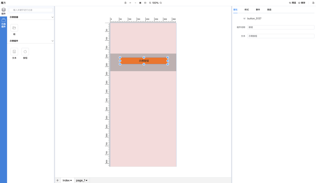 如上圖所示,就是tmagic-editor可視化編輯器,tmagic-editor基于vue3實現(xiàn)。包括左側(cè)側(cè)邊欄、組件列表展示、已選組件的組件樹、中間的頁面拖拽的畫布區(qū)域(也叫模擬器)、右側(cè)表單配置區(qū)域、正中間上方的畫布控制區(qū)域(放大縮小、網(wǎng)格線顯隱)、預(yù)覽、保存、查看源碼(js schema描述的js對象)、底部區(qū)域的頁面添加與刪除。編輯器具有擴展功能,業(yè)務(wù)可以根據(jù)需要在側(cè)邊欄和頂部欄增加版本管理、發(fā)布等功能。